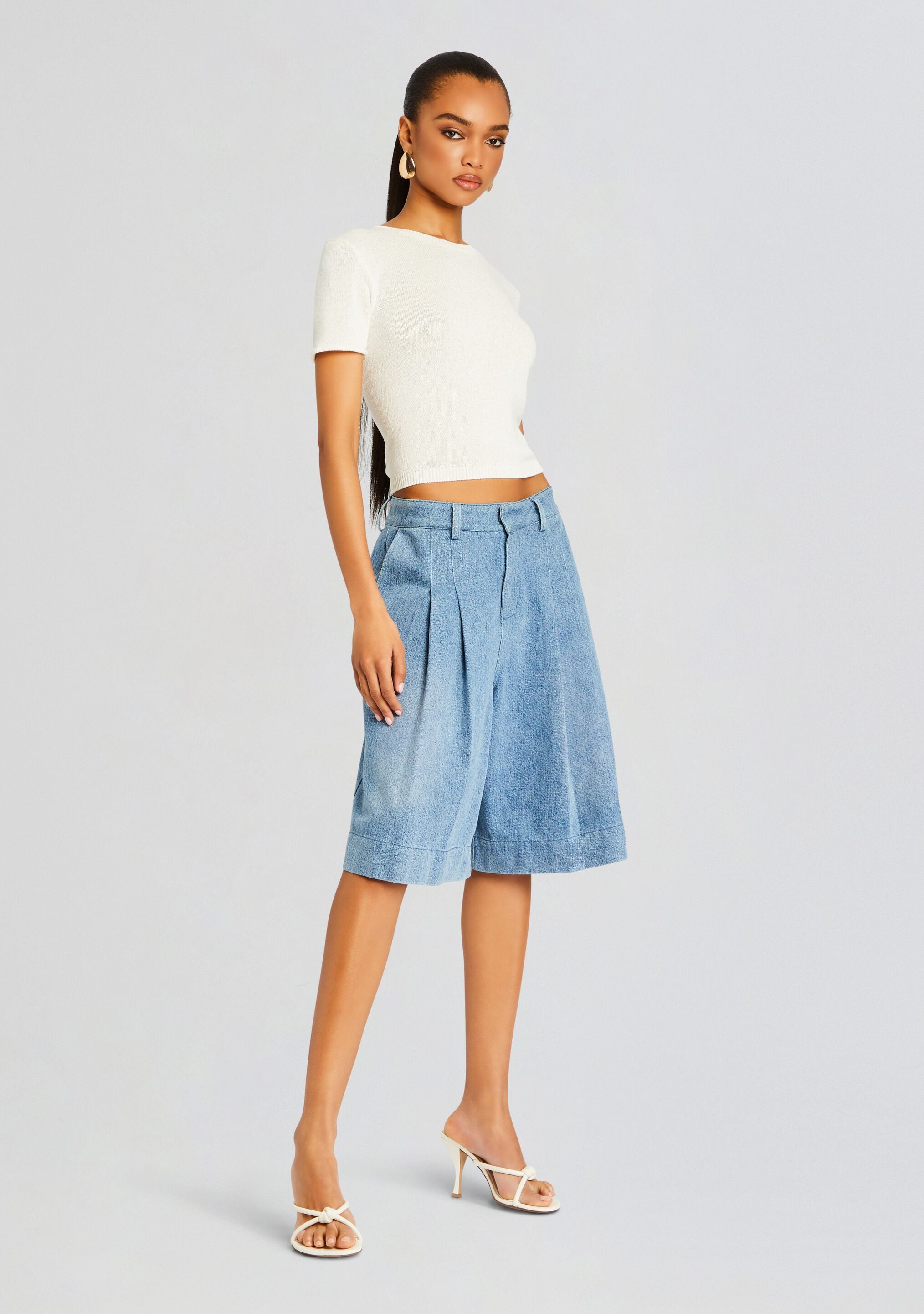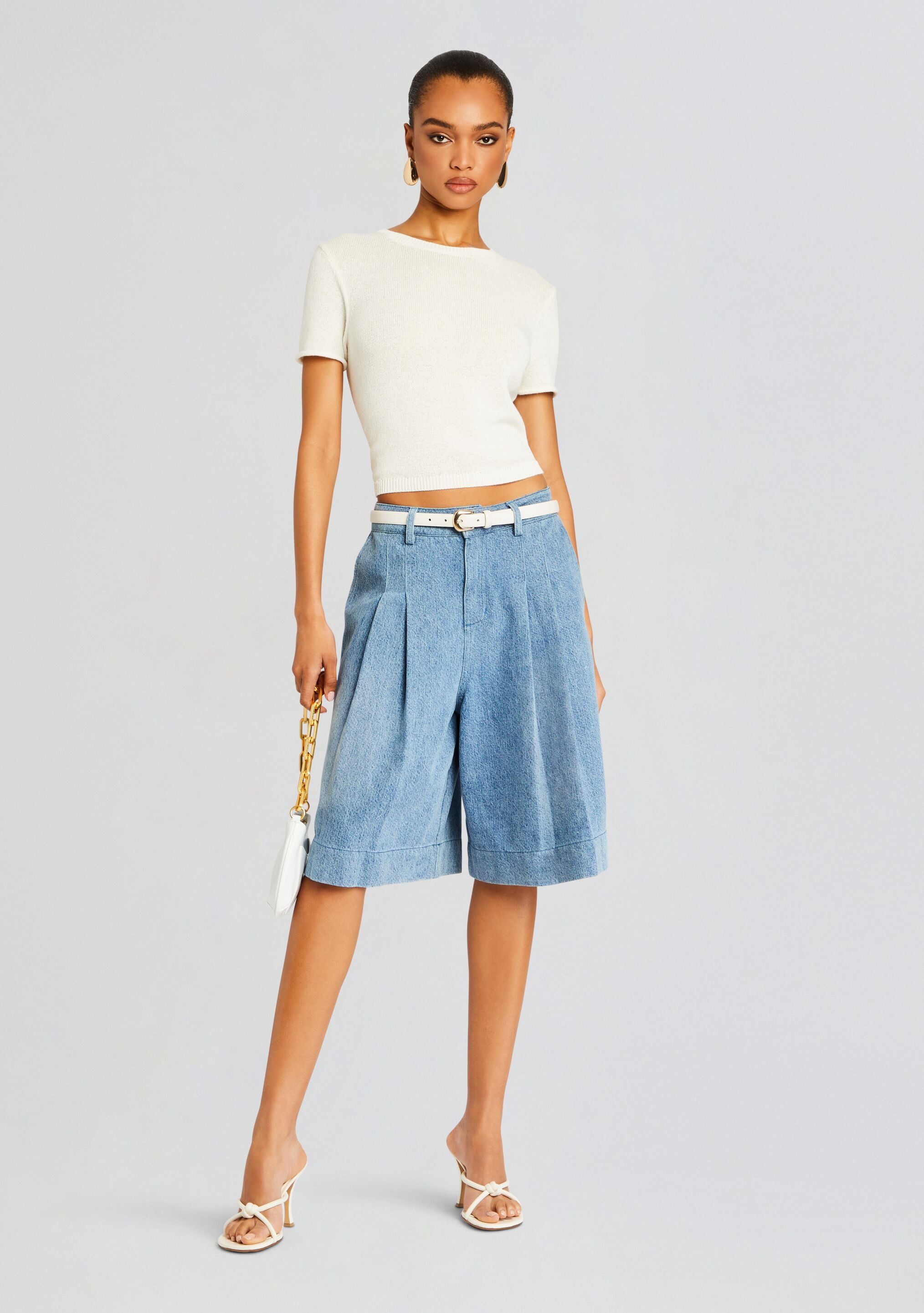 Stay cool and stylish in our Arietta Short. These shorts feature pleated detailing and a relaxed fit. Perfect for a casual summer look. pair these shorts with a t-shirt. tank top. or blouse. Shown here in Vintage Oasis.